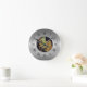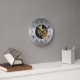Wall clock with picture of clockworks. Exposed gears and silver effect clock. Would make a good birthday present for an engineer.