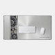 For a sleek masculine look with a science, technology, or engineering theme, this desk mat skin design features a band of exposed gears placed over a silver radial metallic background that resembles the surface of a compact disk. A text template is included for personalizing with your name, monogram, or other desired text. Get this unique look for your office, workshop, classroom or home.