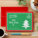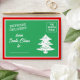 Express Delivery from North Pole funny Christmas envelope. Cute Holiday mailing template design for special delivery postal letter to or from Santa Claus. Red and green or custom colors with Christmas tree drawing.