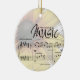 Lightweight, smooth, pure white ornament with nice sheen. Perfect size to be seen from across the room ... and to attract closer inspection! Price was great for ordering enough for the whole family! Clear, bold black design just as requested. Matches the order exactly. Just so nice!