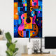 This bold abstract guitar artwork merges expressionist textures and geometric forms, creating a vivid and rhythmic composition. The guitar, built from dynamic color blocks in fiery oranges, deep blues, and electric pinks, resonates with energy and movement. A tribute to music and creativity, this piece is perfect for musicians, art lovers, and those looking for a striking, contemporary decor statement.