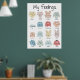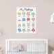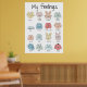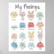 This print shows a funny bunny with 16 common expressions, it is educational, cute and decorative.