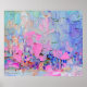 Expressive embossed paint on canvas, created using palette knife technique of oil painting. Primary colors: purple, white, turquoise, blue, pink, violet.