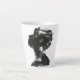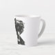 This sleek latte mug features a unique and artistic design. The main illustration is the silhouette of a person's face, formed by bold, expressive brushstrokes. The use of solid black against the white surface of the mug creates a strong, eye-catching contrast.