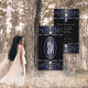 Make a lasting impression with this luxurious and elegant business card design featuring fine filigree ornate ornaments with diamonds and sparkling stars. The borders are shimmery blue with silver decor on a black background.