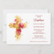 Exquisite Golden Glitter Floral Cross Baptism Invitation