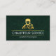 An exquisite green marble grunge cover is accentuated by a pair of gold lines. Here lies the business name "CHAUFFEUR SERVICE" with your prestigious name just underneath. Towards the top is a gold chauffeur logo you can use.