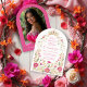 On the back, the card provides space to add a personal photo, allowing the sharing of unique memories and special messages with family and friends. This design blends cultural tradition with a modern artistic style, perfect for a memorable quinceañera celebration.