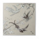 Reproduced from one of the most unusual tiles in our personal collection, it is hard to believe that this antique tile is actually from the 1880s! It looks like an etching of hummingbirds gathering nectar from a blossom and chasing insects in the air. White and brown on beige. LIghthearted. Timeless. Irresistable. Giftable.