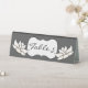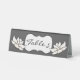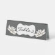 This table tent sign features a pewter gray background with an elegant flourished frame flanked by two white lotus blossoms. Sample text sits inside the frame that you can customize with your own table numbers or other information, so that seating can go more smoothly at your spring-themed wedding. Be sure to check out the full Exquisite Lotus in Pewter and White collection to find more products, including invitations, guest books, napkins, and even favor boxes, with matching designs that will allow for a truly coordinated wedding or special event.