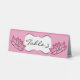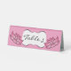 This table tent sign features a petal pink background with an elegant flourished frame flanked by two bright pink lotus blossoms. Sample text sits inside the frame that you can customize with your own table numbers or other information, so that seating can go more smoothly at your spring-themed wedding. Be sure to check out the full Exquisite Lotus in Pink collection to find more products, including invitations, guest books, napkins, and even favor boxes, with matching designs that will allow for a truly coordinated wedding or special event.