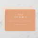 This elegant wedding enclosure card features a minimalist and sophisticated design with a soft peach background, creating an inviting and warm atmosphere. The clean typography adds a touch of modernity while maintaining a classic feel, perfect for conveying essential details about the special day. Ideal for couples who appreciate understated elegance, this card seamlessly complements any wedding theme, ensuring guests have all the information they need in a stylish format.