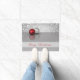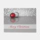 This elegant Christmas design features a red and silver ornament resting on a glossy reflective surface, surrounded by a soft bokeh background in shimmering shades of gray and white. Perfect for adding a touch of festive elegance to your Christmas doormat.
