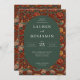 This elegant wedding invitation features a rich, floral pattern with vibrant reds and greens, creating an opulent and sophisticated look. The central oval frame showcases the text in a classic serif font, adding timeless charm to the design. Perfect for a formal celebration, this invitation exudes warmth and grace, setting the tone for a memorable event. With its customizable text area, it's ideal for couples looking to add their personal details while maintaining an air of refined elegance.