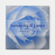 Attractive soft blue rose wedding magnet personalized with your names and date.