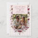 Exquisite Romantic Burgundy Floral Arch Wedding Save the Date Design with Pastel Tartan Back.