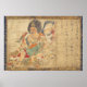 This is a Japanese color print from the 12th Century. It's titled: Tenkeisei - God of Heavenly Punishment, or: Extermination of Evil. In it we see a scary looking demon god with four arms, fighting, eating, crushing, destroying and doing all sorts of atrocious things to these humans / creatures. Imagine the impact of this print when viewed in the 12th C! (long before TV). This is a relatively colorful print: red, yellow / gold, blue, green, orange and black colors were used. The artist also wrote something in Kanji and Hiragana characters (Japanese writing).