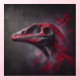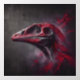 An abstract portrait showcasing the head of an extinct dinosaur. Painted with red and charcoal colors in an artistic style, this captivating artwork unfolds against a dark shady background. Witness the beauty in the mysterious echoes of the past in this very captivating piece.