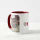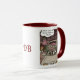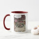 A mug with a funny cartoon about extinct dinosaurs coming back to life. The image, background and text may be personalized. Original artwork by DBcartoons.