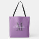 Extra large big purple tote bag with chic monogram. Elegant monogrammed shoulder bag for shopping, groceries, office, books, sports, wedding and more. Classy purple and white typography design template. Double sided all over print with black handles. Chic Birthday gift ideas for women.