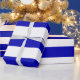 A wrapping paper designed with a royal blue and white striped pattern in extra large size. You can change the royal blue for a different color.