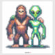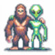 Extraterrestrial Alien Being and Bigfoot Pixel Art Sticker