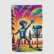 Colorful Extraterrestrial alien being throwing disc golf colorful ai art.