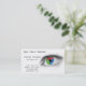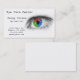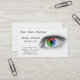 This beautiful business card has a blue, red, and green eye on the right side. Your business information is on the left side. All text on the front is customizable for your business!
