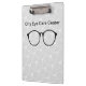 Eyeglasses theme business clipboards with eyeglass pattern lightly printed in the background and a dark pair and company name you can replace with your own business name or professional name in its place. Created for an Eye Doctor, eye care center, or Optometrist.
