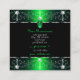 Make a lasting impression with this luxurious and elegant business card design featuring fine filigree ornate ornaments with diamonds and sparkling stars. The borders are shimmery green with silver decor on a black background.