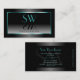 Make a lasting impression with this elegant and modern business card design featuring a black and white color gradient with a luminous shimmery teal decor frame. Matching an outstanding monogram with mirror shadow effect.