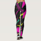 Eye-catching Leggings 2024. A vibrant and eye-catching design that pulses with energy and excitement. The background is a striking mix of neon hues, including hot pink, electric green, and bright yellow, creating a captivating visual experience. Abstract shapes and dynamic lines flow throughout, adding a sense of movement and rhythm. The use of contrasting black or dark elements enhances the brightness of the neon colors, making them pop even more. This design exudes a lively and modern vibe, perfect for those who want to stand out and express their bold personality.
