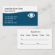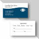 Eye care Ophthalmologist appointment business cards with eye logo you can replace or leave in place. A business card and appointment reminder combination in a modern simple layout you can customize online.