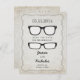 This modern and fun Save the Date postcard is ideal for a young couple with a sense of humor and a discriminating taste. It features two pairs of eye glasses on a vintage looking textured background and an ornate frame. Great design for artists, designers, bloggers, teachers, fashionistas or hipsters. Add your own even details.
