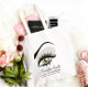 Custom company branding products matching hair and beauty business cards. Drawing with a drawing of eye with long lashes and eyebrows of female face in white and black. Perfect for your company promotion. Suitable for make-up artists, eyelash extension services, lash tinting and waxing services, brow tinting services, henna tattoos, permanent makeup, estheticians, beauticians, stylists, spa salon, hair and beauty salon or model agency. Customizable. Collection of matching branding products: