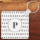 Elegant optician themed keychain with an eye sight test chart and a pair of spectacles. on the front, and the initial monogram of your choice on the rear Fabulous gift for an optician, ophthalmologist, or for anyone who wears glasses.