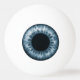 Eyeball ping pong ball with a blue iris.