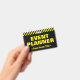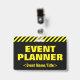 This attention-grabbing badge design features the message "EVENT PLANNER". A badge like this could perhaps be used to identify that the wearer is an official at an event. [~Z0000307]