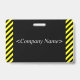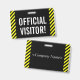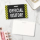 This eyecatching badge design features the message "OFFICIAL VISITOR!". It also features yellow and black colored caution stripes. The back features a customizable company name or other custom message. [~Z0000286]