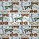 Exclusive custom-made fabric boasts an fun, original novelty pattern designed by Leslie Sigal Javorek, featuring multiple pairs of fashionable eyeglasses & sunglasses strewn against a homework sheet of hand-printed math formulas. All styles of glass frames are varied, including retro cat's eye, round gold wire rims, rectangular wire Granny glasses, tortoise shell, 50's style men's sunglasses, & more. For clothing, craft projects, curtains, etc.