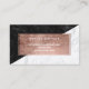 A modern, stylish eyelash extensions business card with modern hand lettering style brush typography in faux rose gold foil on a trendy and elegant black and white marble color block background. If you need any customization, don't hesitate in contacting me