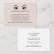 Share important aftercare info with your customers with these chic and elegant cards for eyelash extension specialists and aestheticians. This modern and stilish business card design features a glamorous illustration of a woman's eyes, eyelashes with glitter copper eyeshadow and brows over a TRENDY CHAMPAGNE PINK background with name or business name and title.