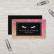 A red/bronze glitter image fills the background of this beauty-themed business card. A pair of white eyelashes is perfect branding for eyelash extensions, makeup artists, cosmetic companies, lash bars and more. © 1201AM CREATIVE