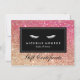 Coordinates with the Eyelashes with Red/Bronze Glitter Business Card Template by 1201AM. A red/bronze glitter image fills the background of this customizable gift certificate for eyelash salons. A pair of white eyelashes is perfect branding for eyelash extensions, makeup artists, cosmetic companies, lash bars and more. This gift certificate comes with a standard white envelope. © 1201AM CREATIVE