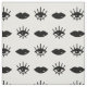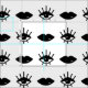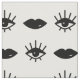 Black and white fabric with a kitschy pattern of glossy lips and eyes with long lashes.
