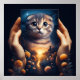 Let the captivating gaze of this kitten touch your heart. Held gently in welcoming hands, the feline's eyes reflect a world of wonder and tranquility. The dreamlike scene within, echoing the sentiment "The beauty of a moment is measured by how deeply it touches the heart," invites you to pause and appreciate the simple, profound moments in life. Perfect for adding a touch of warmth and heartfelt emotion to any room.