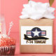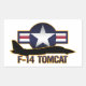 Sharp silhouette of the famous F-14 Tomcat naval fighter jet aircraft backed by the United States military aircraft national roundel emblem