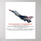 The General dynamics F-16 Fighting Falcon, depicted in the colours of the US Air Force Thunderbirds aerobatic team. Detailed specifications of this supersonic jet are shown.