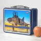 This is a standard metal lunchbox that appears to work just fine. We designed this box ourselves with an uploaded photo and custom text on the front and back. It looks absolutely beautiful except the front of the lunchbox is not centered like it shows in the photo. The print borders don't align with the inset flat part of the box where the preview photo online showed it perfectly centered in there. The back looks nice and centered though.