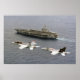 Capt. Michael Manazir, commanding officer of the nuclear-powered aircraft carrier USS Nimitz (CVN 68), Capt. David Woods, former Commander, Carrier Air Wing (CVW) 11, and Capt. Thomas Downing, commander CVW-11, fly by the Nimitz in a F/A-18E and F/A-18F Super Hornets during an airborne change of command ceremony for CVW-11. The Nimitz Strike Group and embarked Carrier Air Wing 11 are deployed in the U.S. 7th Fleet (July 31, 2007 - Photograph by Lt. Cmdr. Brian Knoll - Released).